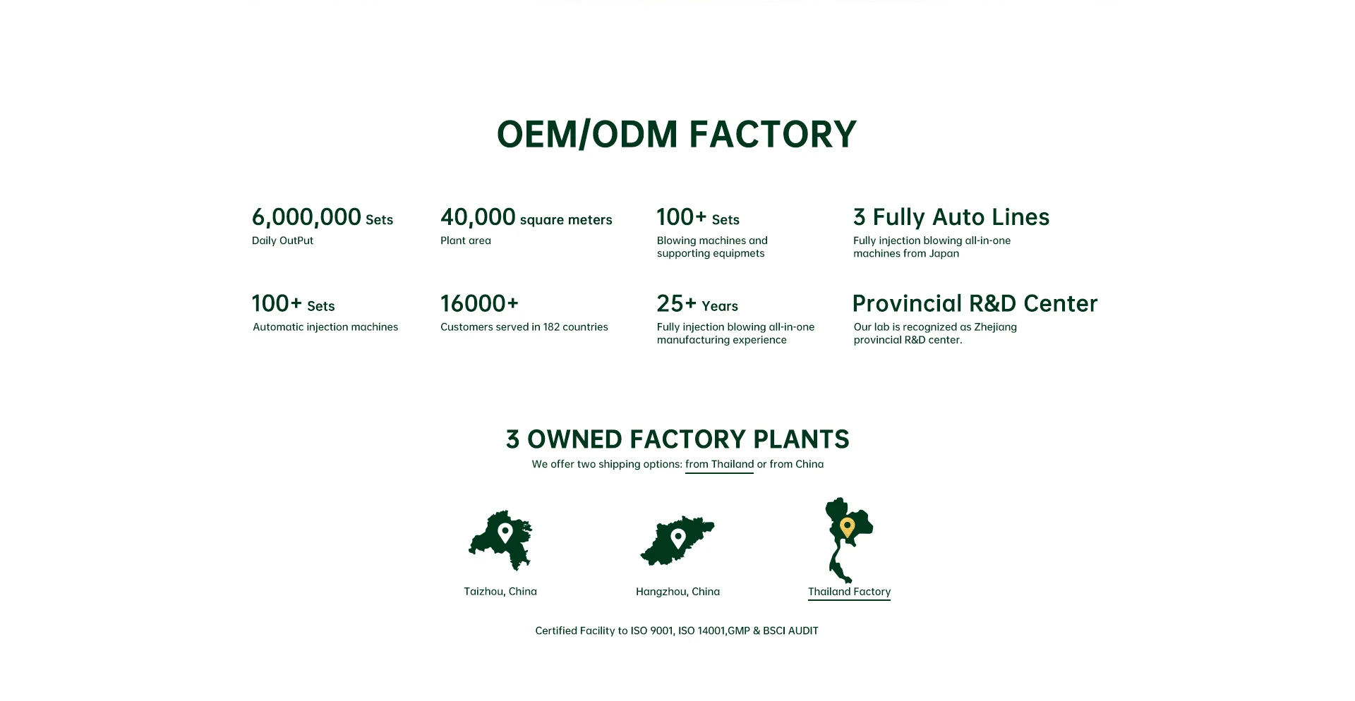 Zhejiang Sanle Plastic Co., Ltd. has over 20 years of experience in manufacturing plastic products. Our dedicated team, many of whom have been with us since the beginning, ensures consistent quality and service. We operate three fully owned production plants, offering customers the flexibility to choose manufacturing and shipping from either Thailand or China. Our successful track record also includes establishing independent production facilities through joint ventures with clients, fostering mutually beneficial collaborations. Our factory is equipped with a fully equipped testing laboratory, ensuring the highest standards of quality control. We specialize in the production of complex, high-precision products such as plastic bottles, caps, boxes, jars, and more. Additionally, we offer customization services for product functionality, style, color, and decoration, including labels and printing, leveraging our strong R&D capabilities and commitment to quality.
